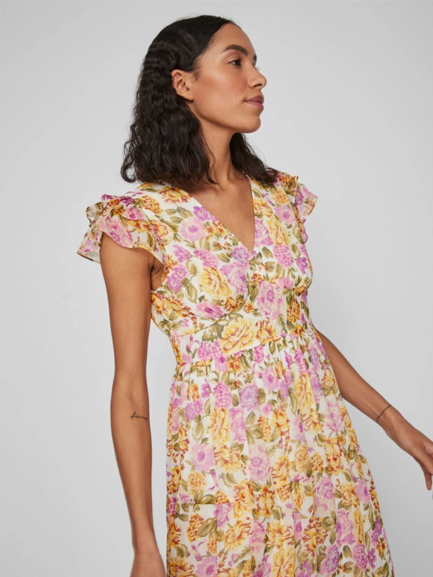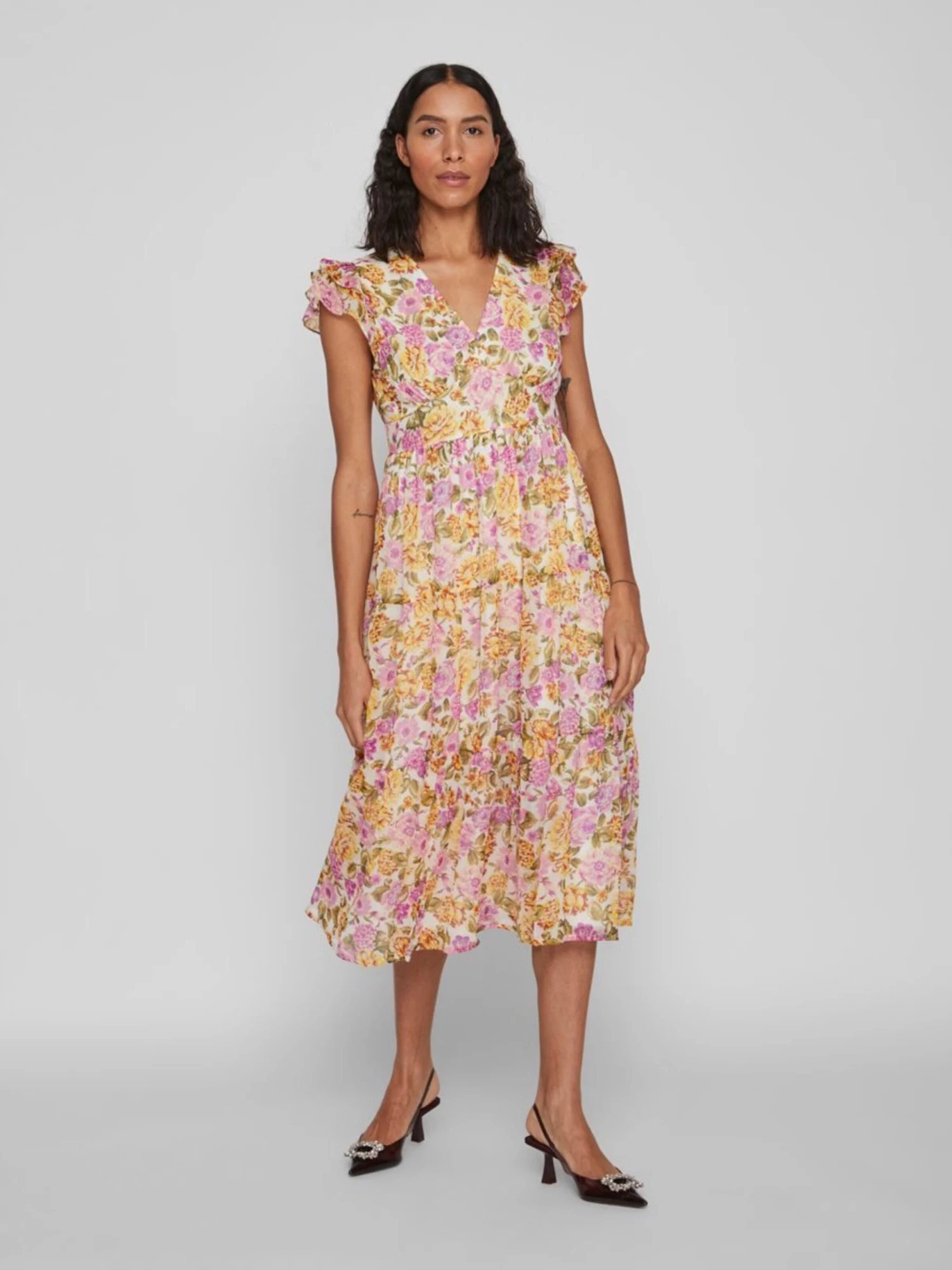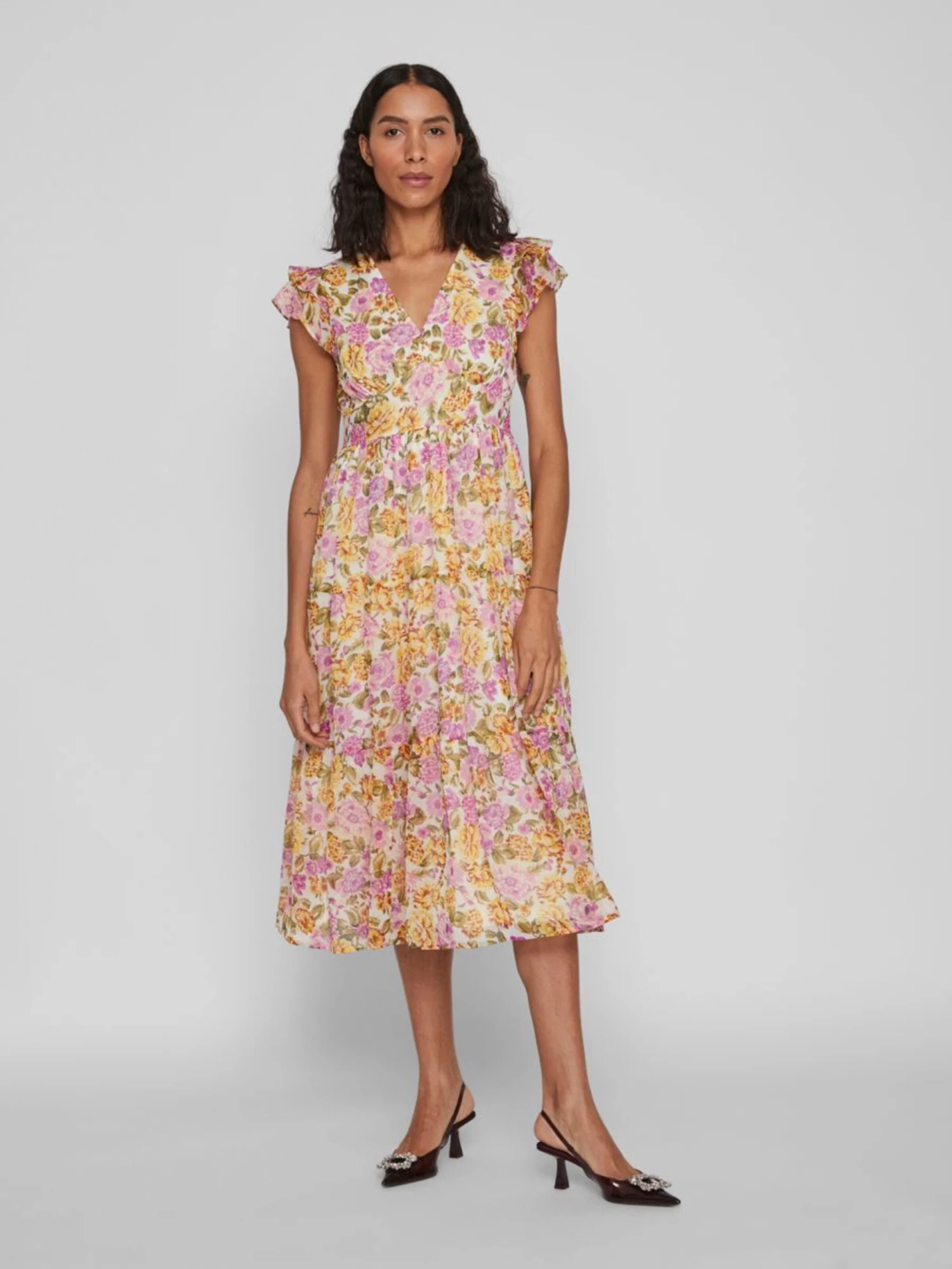 Vila Midi Jurken Jurk Dames Mandarijn / Kreeft / Lichtroze
